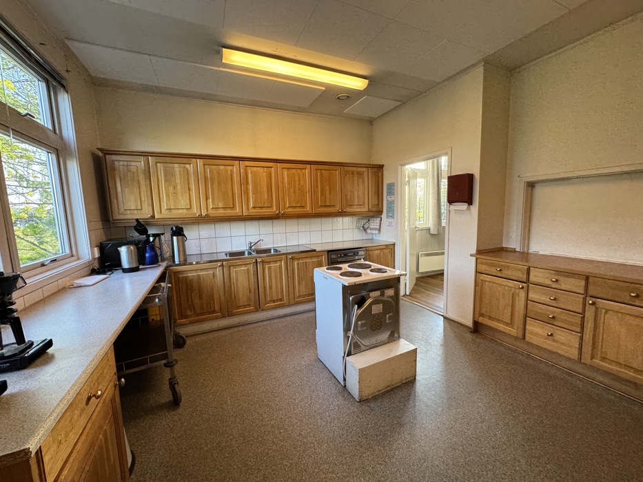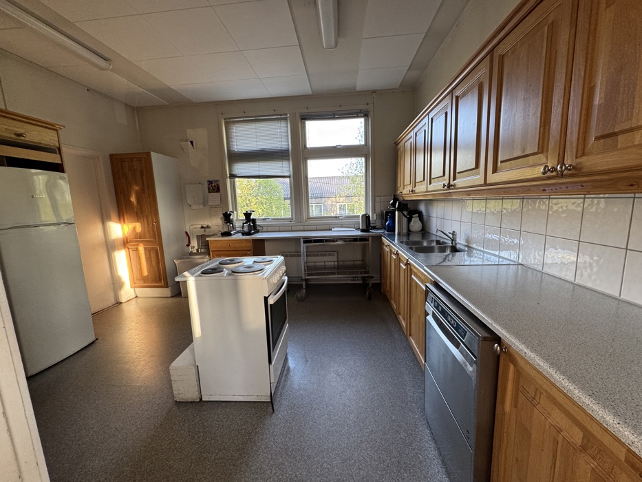 Det er kjøkken med direkte tilgang til salen. Det er fullt utstyrt med middag og kaffeservice.